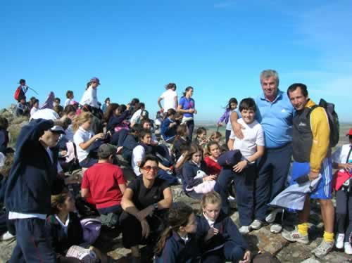 Alumnos de 4° y 5° grado en la cima del cerro Centinela en Tandil